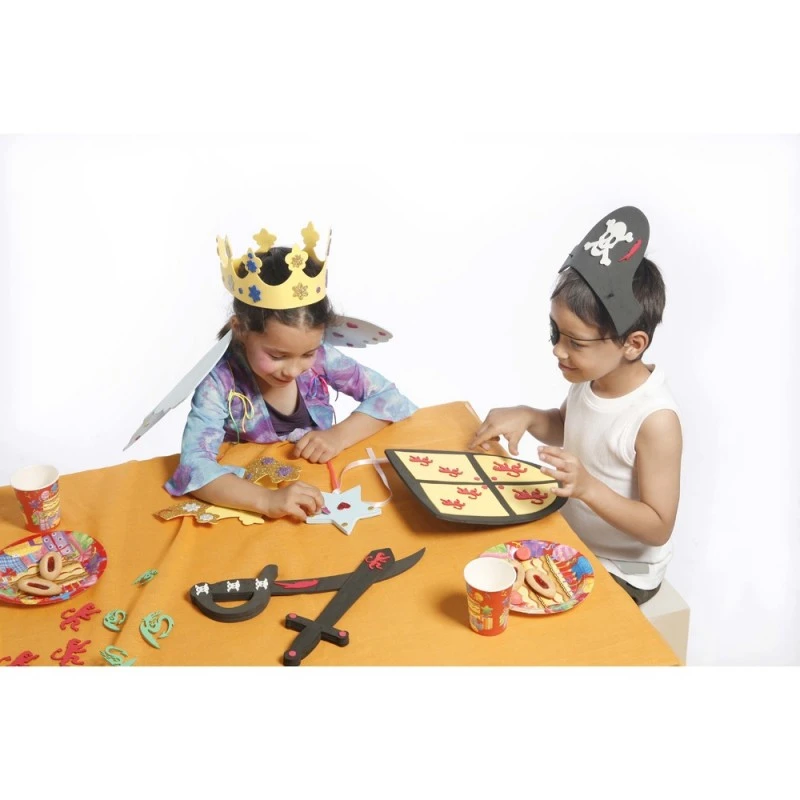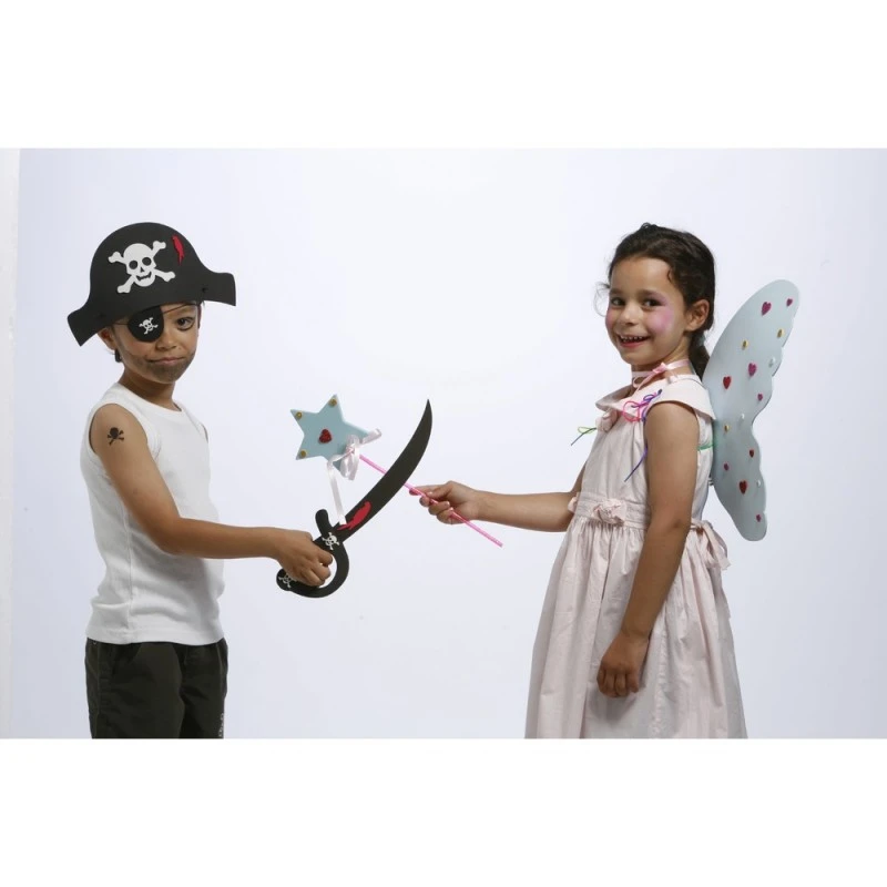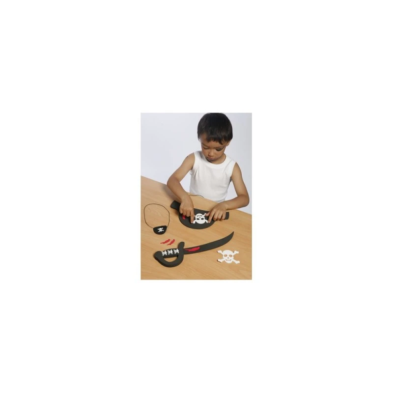 Grâce à ce kit d’accessoires de pirate en mousse à décorer, votre enfant assemblera et personnalisera son sabre et son chapeau de pirate en complète autonomie.
