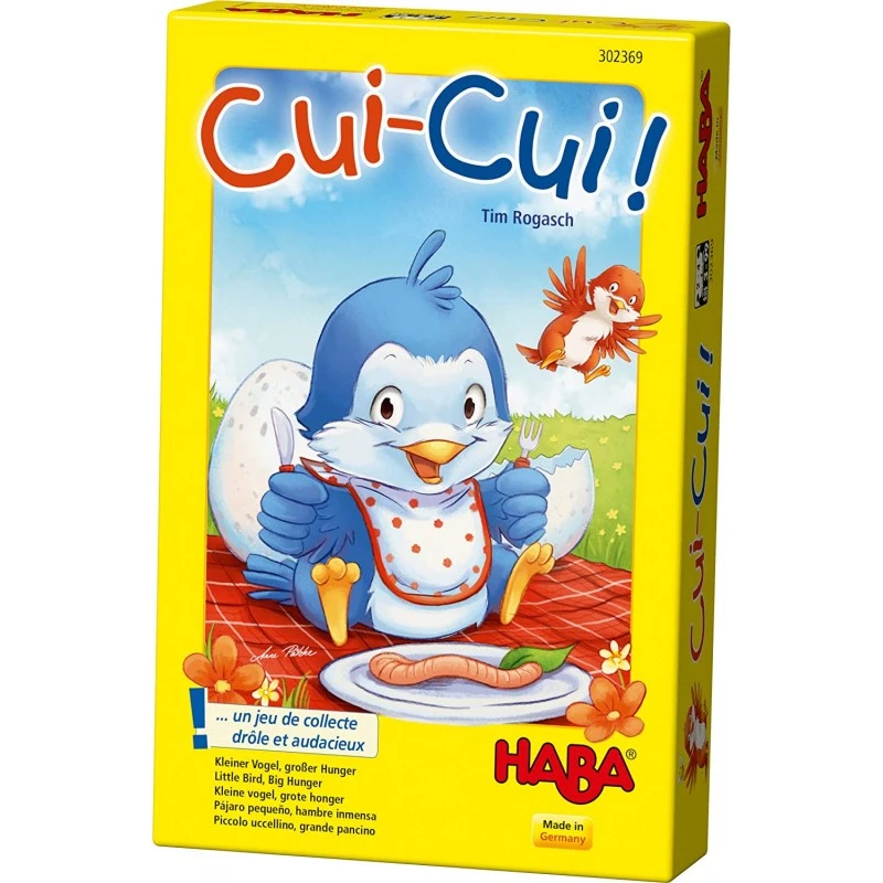 Découvrez le jeu Cui-Cui de la marque HABA. Cui-Cui! Mais qui donc sort de son oeuf? Quatre petits oisillons audacieux cassent la coquille de leur oeuf et ont déjà très faim.