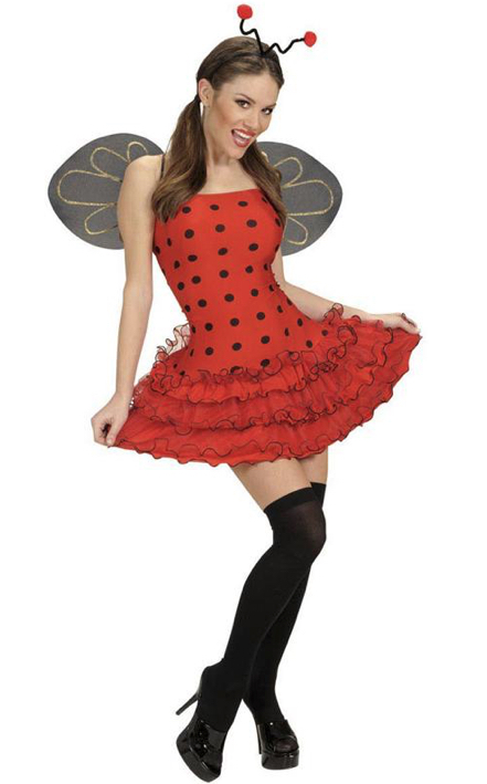 Magnifique déguisement de coccinelle pour femme. Ce déguisement comprend une robe, des ailes, ainsi que des antennes.