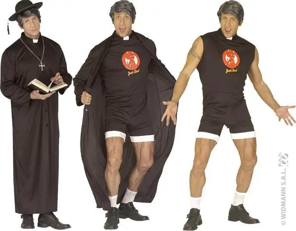 Déguisement de Curé Chippendale pour adulte. Ce déguisement pour soirée à thème, ou bien enterrement de vie de jeune fille ou enterrement de vie de jeune garçon.