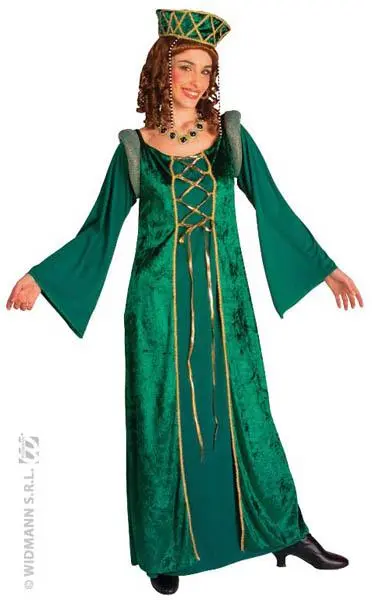 Ce costume médiéval en velours vert se compose d’une robe ainsi que d’une coiffe.