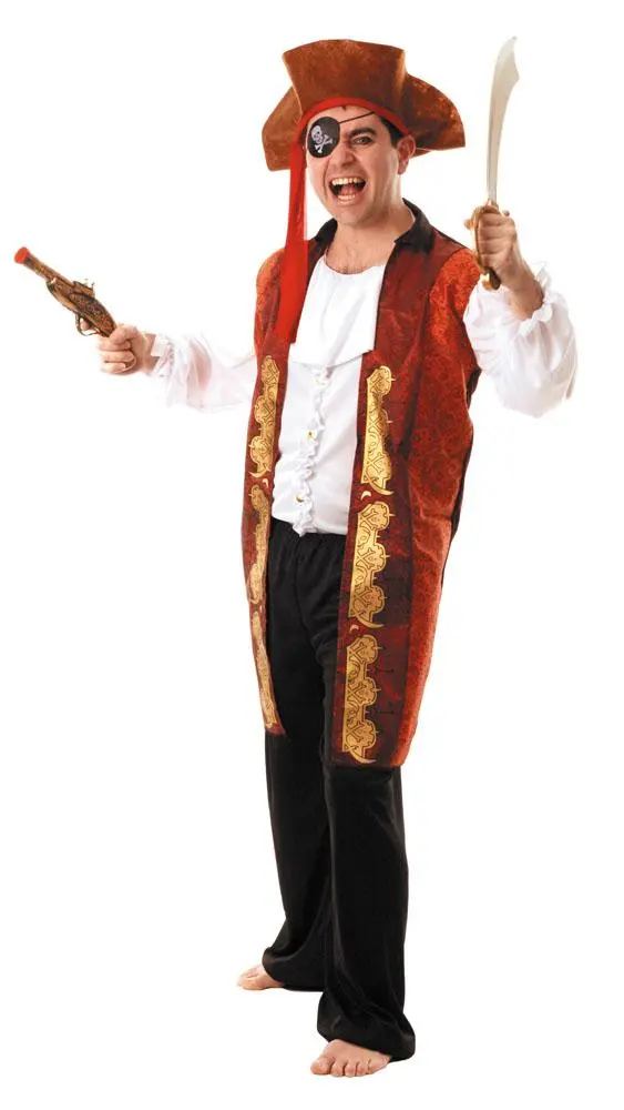 Superbe déguisement de Corsaire pour adulte. Ce costume pirate homme se compose d’un pantalon noir, d’une chemise blanche, d’un gilet rouge et doré ainsi que du célèbre chapeau de pirate. Attention le pistolet de pirate, l’épée ainsi que le cache oeil ne sont pas compris.