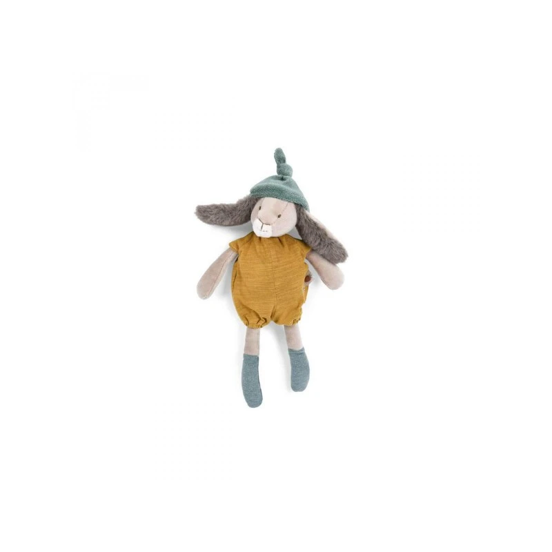 Doudou Petit lapin en velours, vĂȘtu de sa barboteuse ocre en jersey flammĂ©. Avec son pompon au bout du bonnet, ses grandes oreilles toutes douces et ses longues pattes, ce compagnon apaisant et rassurant est facile attraper par les petites mains.