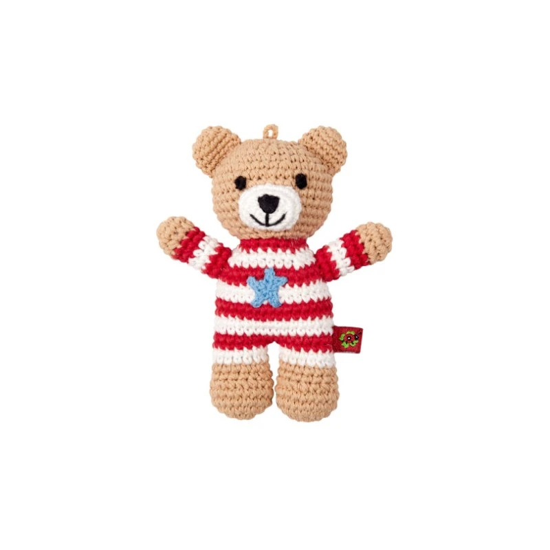 Idéal en cadeau de naissance, ce hochet en tricot fera craquer les tout-petits.