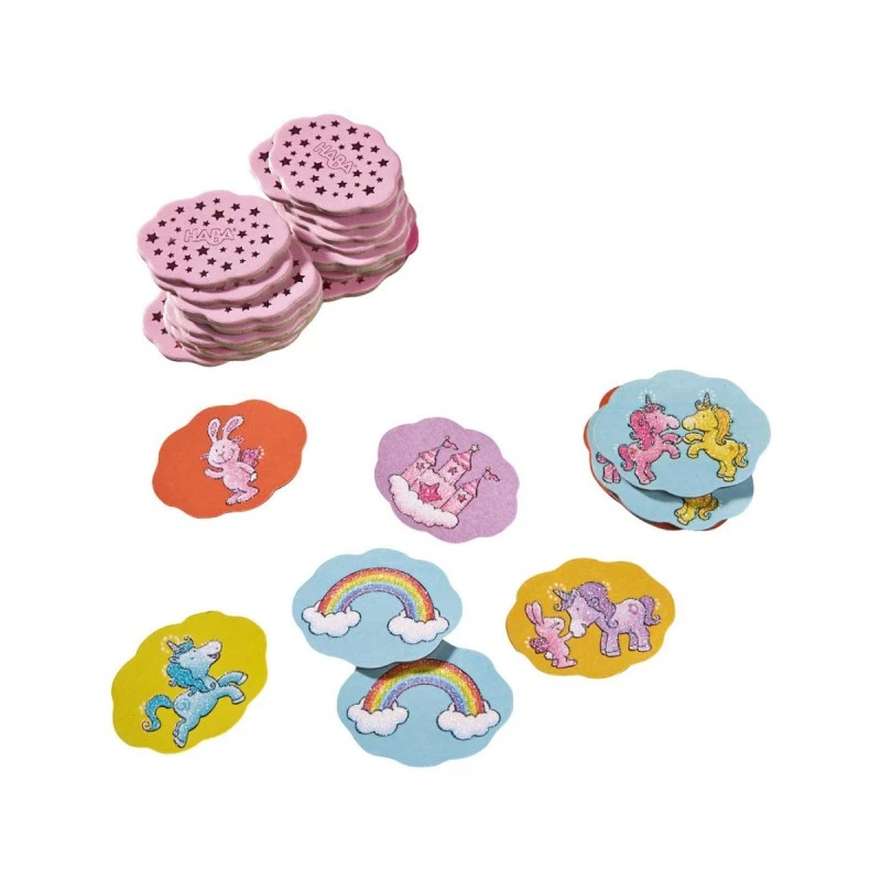 Découvrez le jeu Licorne dans les nuages de la marque HABA. Jouez avec la licornes Bonheur étincelant et ses amies à un mémory féerique ! Celui qui se souviendra le mieux où se trouvent les deux images identiques et réussira à former le plus grand nombre de paires remportera la partie !