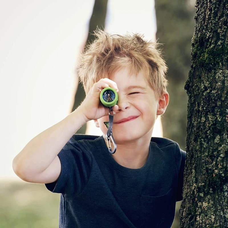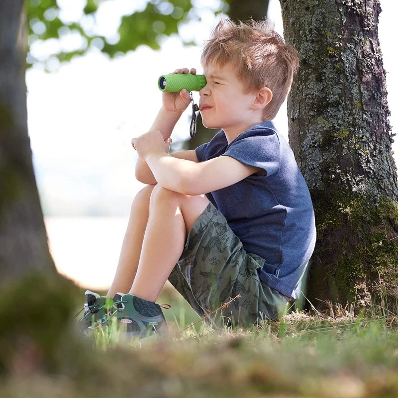 Longue-vue avec grossissement. Les jeunes explorateurs pourront observer de loin les rouges-gorges, lièvres et autres animaux de la forêt.