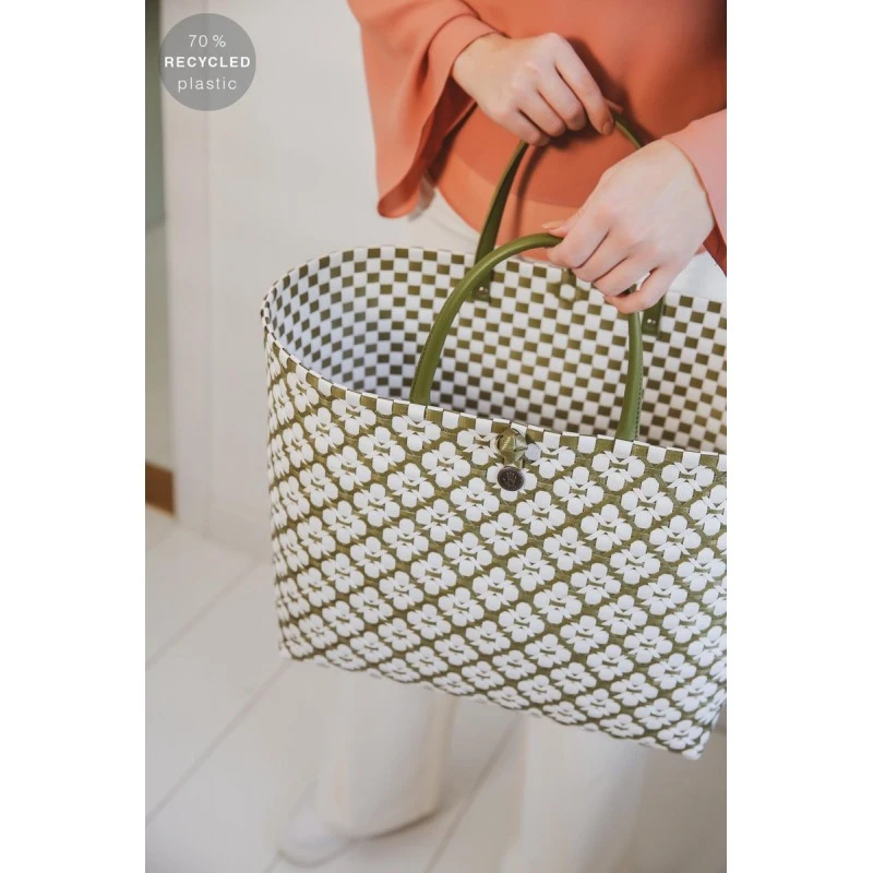 Le panier idéal pour aller faire ses courses au marché, pour une balade en ville par une belle journée d’été ou tout simplement pour ranger vos articles de plage. Les poignées en cuir souple rendent le sac facile et confortable à transporter. Le design unique du motif de tressage fait de ce shopper une belle idée cadeau. 70 % fabriqué en plastique recyclé.