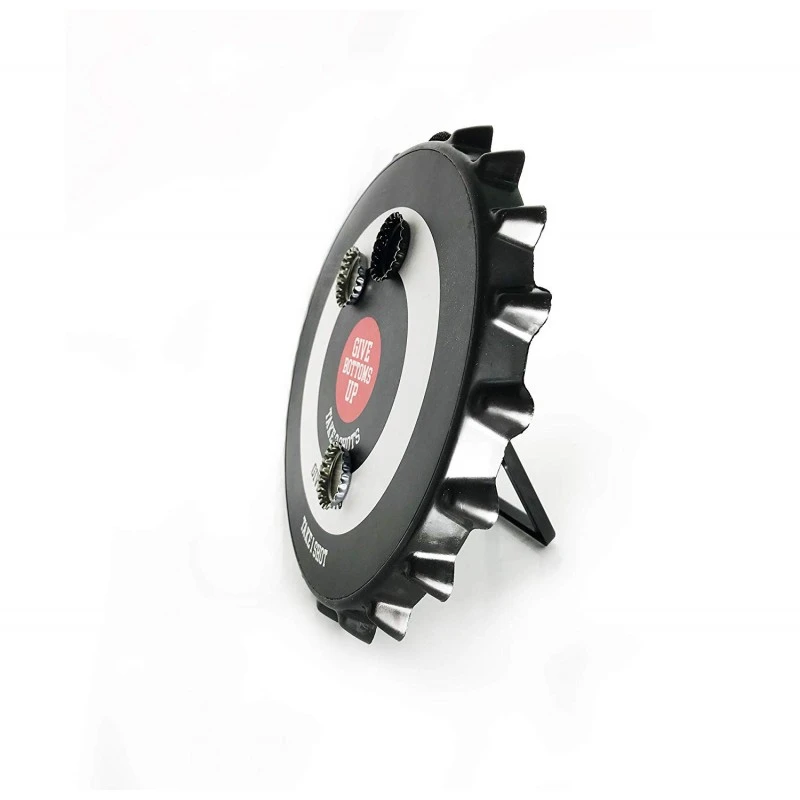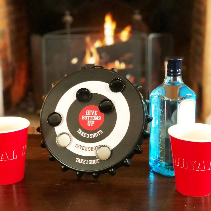 Les fléchettes sont remplacées par des capsules et les points à gagner par des gages en shots à boire… Si l’on vise bien, on fait boire le copain !