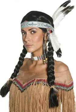 Achetez malin, achetez une perruque mixte indienne. Cette Perruque Western Authentic avec ban et plumes, est aussi bien faîtes pour les hommes que pour les femmes.