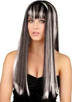 Nous vous proposons cette perruque Médéa toute en longueur et de couleur blanche et noire.