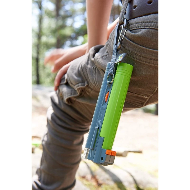 Facile à emporter grâce à son faible poids et son format poche pratique avec mousqueton pour le fixer au sac à dos.