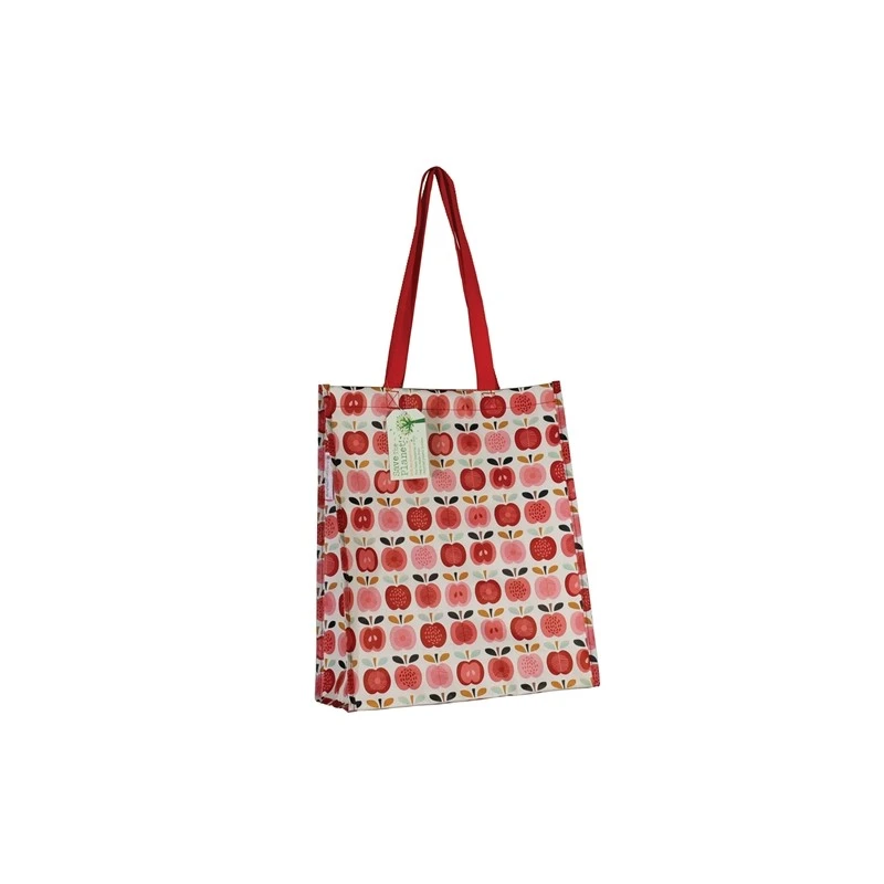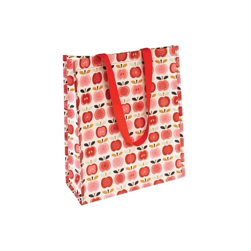 Je suis un ravissant sac cabas pour vous accompagner dans toutes vos promenades et moments shopping. Joliment décoré de pommes rouges et roses esprit vintage, je suis fabriqué à partir de bouteilles en plastique recyclées dont les poignées solides sont fabriquées en nylon. On me plie facilement pour faciliter le rangement d’objets et je supporte de lourdes charges.