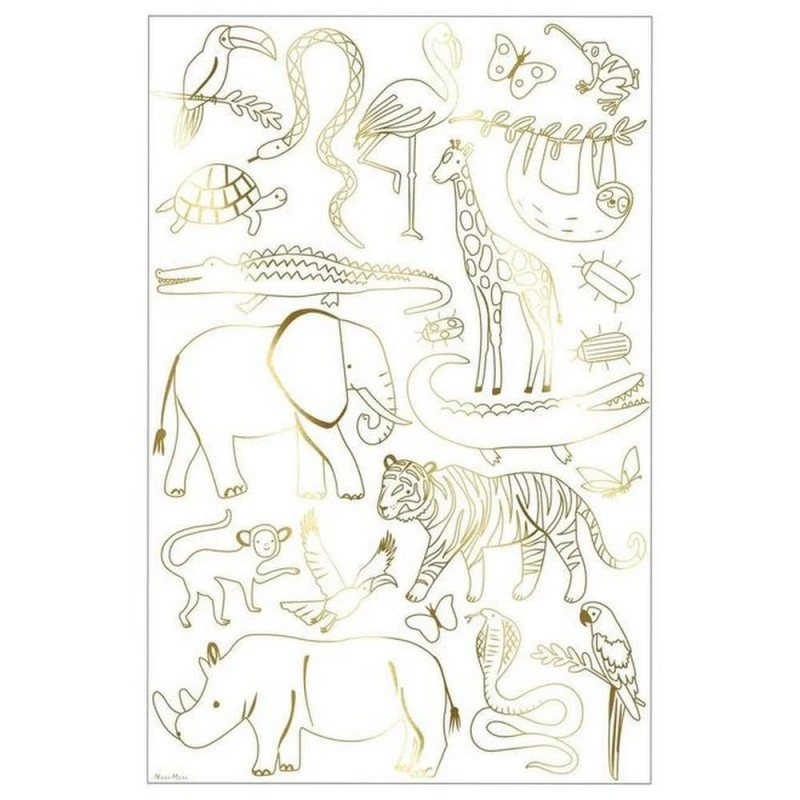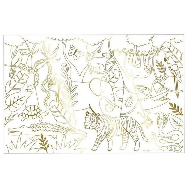 Set de 2 posters sur le thème des animaux de la jungle avec détails dorés à colorier.