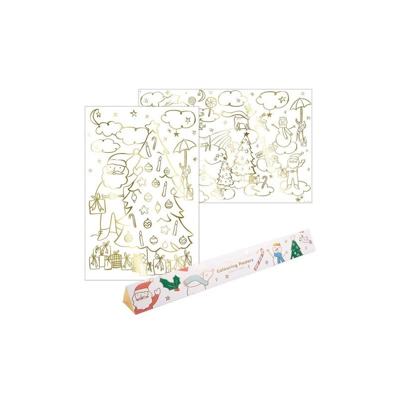 Set de 2 posters de Noël à colorier avec détails iridescents. Idéal pour occuper votre enfants pendant les fêtes de Noël.